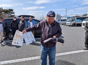 宮城協会春季投げ釣り大会後、ライフジャケットの必要性に関する注意喚起および、タイプ別のライフジャケット着用実践等 |