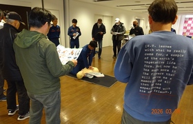 山口協会では、事故に際して適切な応急処置ができるよう、消防署の協力を得て開催しております。
