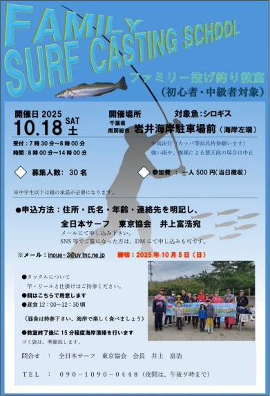 ファミリー投げ釣り教室(初心者・中級者対象)