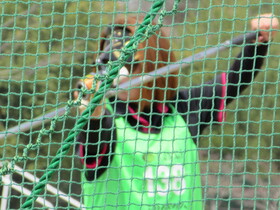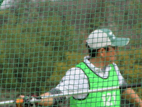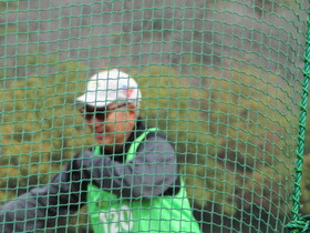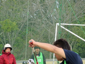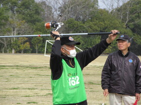 (6) 投てき行為(審判員が投てき開始の合図をしてから、オモリが着地するまでの間)中に、投てきエリアより外の地面に足を踏み出した場合、投てきラインに足が触れた場合及び前方の地面に竿先・オモリが触れた場合はファウルとする。